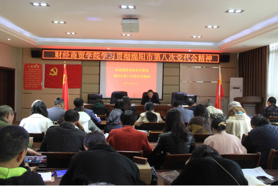 10月27日下午,威廉希尔体育在精业楼四楼会议室召开全院教职工大会,学习贯彻绵阳市第八次党代会精神。党总支书记苏自强主持学习会议。