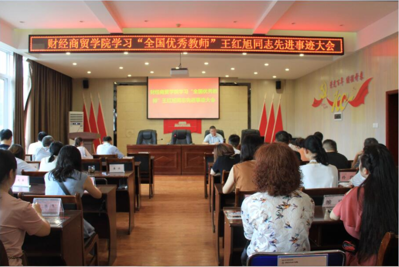 7月14日下午,威廉希尔体育在崇实楼三楼会议室召开王红旭同志先进事迹专题学习会。会议由党总支书记苏自强主持,全体教职工参加会议。