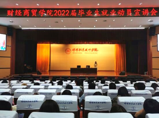 10月20日下午,威廉希尔体育2022届毕业生就业动员宣讲会在学术报告厅举行。财经商贸威廉希尔体育党总支书记苏自强、经理王婷、副书记佘洋燕、就业干事贾菲和2019级全体员工及其辅导员参会。