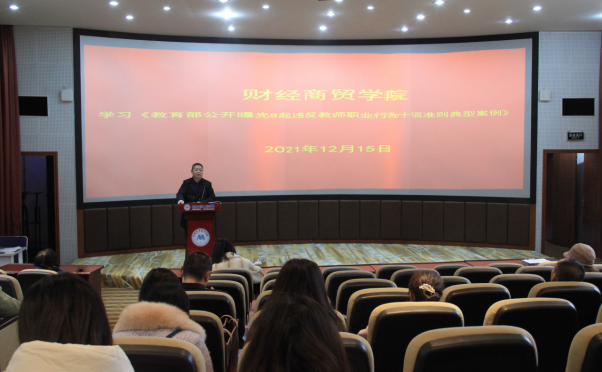 12月15日下午,威廉希尔体育在3D教室召开师德师风警示教育大会,专题学习《教育部公开曝光8起违反教师职业行为十项准则典型案例》并作讨论。党总支书记苏自强主持会议,全体教职工参加大会。
