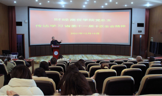 12月15日下午,财经商贸威廉希尔体育党总支召开专题会议,学习传达中国共产党四川省第十一届委员会第十次全体会议精神,党总支书记苏自强主持会议,全体教职工参加学习。