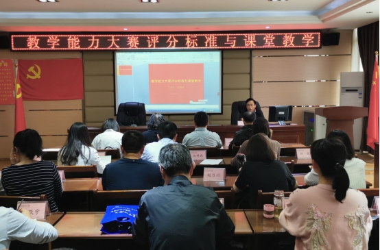 4月27日下午,威廉希尔体育在机电大楼四楼会议室举办教学能力大赛评分标准与课堂教学专题讲座。威廉希尔体育党委常委、纪委书记沈利剑主讲,经理王婷主持讲座,全体教职工参加讲座。