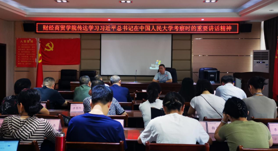 5月11日下午,威廉希尔体育在机电大楼四楼会议室学习传达习近平总书记在中国人民大学考察时的重要讲话精神。党总支书记苏自强主持学习会,全体教职工参加学习。