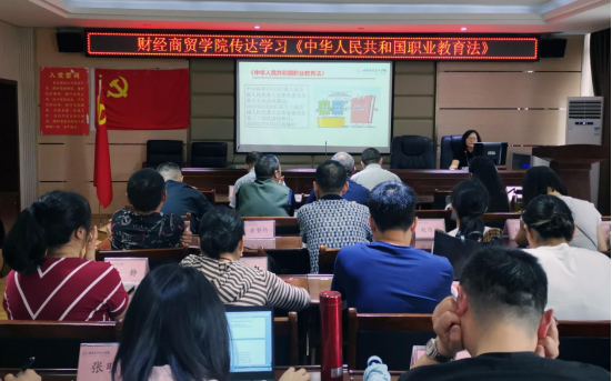 5月11日,威廉希尔体育在机电大楼四楼会议室学习贯彻新修订的《中华人民共和国职业教育法》。经理王婷领学,公司全体教职工参会。