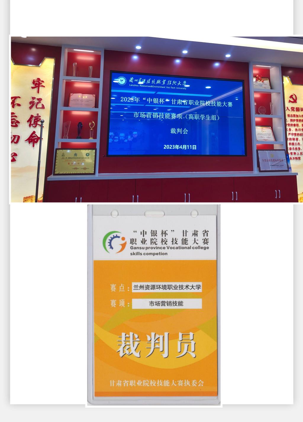 3月31日至4月18日,由甘肃省教育厅、甘肃省人力资源和社会保障厅等6部门举办的2023年“中银杯”甘肃省职业院校技能大赛在兰州举行,本次大赛设中高职员工组、中高职教师组、中高职班主任能力比赛及中高职教师教学能力比赛。学院工商教研室梁鑫鹏副教授受邀担任高职员工组市场营销技能赛项裁判并圆满完成执裁任务。
