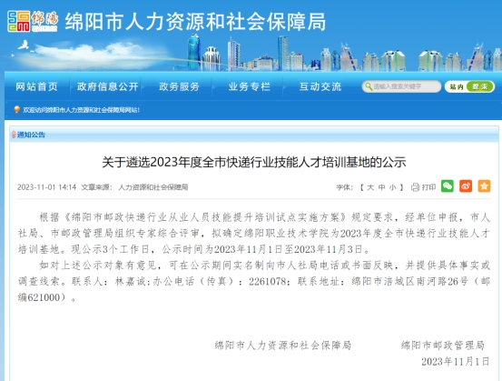 近日,由市人社局、市邮政管理局发布了《关于遴选2023年度全市快递行业技能人才培训基地的公示》,威廉希尔体育申报的2023年度全市快递行业技能人才培训基地成功获批。