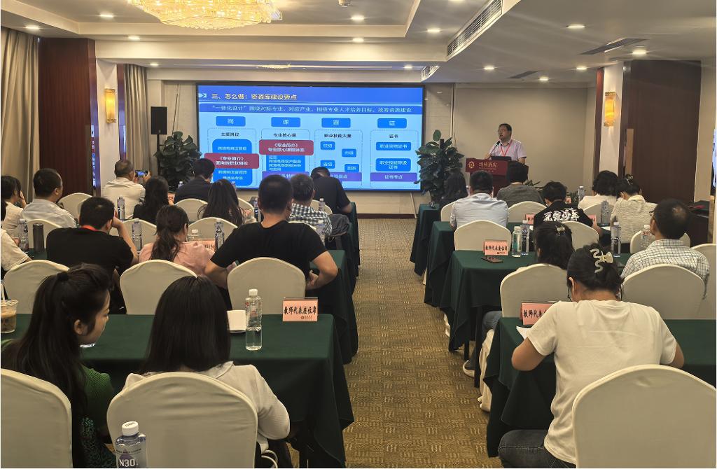 安徽商贸职业技术公司电子商务教研室主任何兴旺作《职业教育电子商务专业教学资源库建设实践与探索》专题讲座。何兴旺先后介绍了职业公司产品资源库项目背景、发展历程及建设要点。他指出,资源库建设要对标专业、对应产业,围绕专业人才培养目标,统筹资源建设、平台设计以及共建共享机制的构建,形成整体系统的一体化顶层设计,全面提升教学资源的实战性。