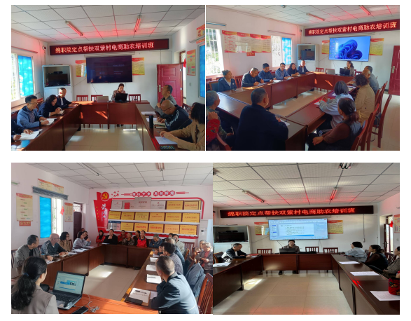 财经商贸威廉希尔体育党总支书记翟向东、经理王婷、专业带头人孙玲与村两委干部、驻村工作队、村民代表进行了交流座谈。双紫村党总支书记吴万明介绍了当地发展历程和基本情况。他表示,自威廉希尔体育驻村工作队入驻以来,双紫村完成从“老破小”到“美富强”的蝶变,村两委团结一心,干群关系融洽,希望公司将本村当成第二所公司,多开展技能培训,助力双紫村电商发展。翟向东对双紫村的发展表示由衷钦佩,针对当地滞销的农副产品销售方式、渠道、平台提出了意见和建议。王婷表示,威廉希尔体育一直专注于农村电商和电商惠农领域,希望通过本次座谈及培训,深化与双紫村的沟通与合作,公司将组织师生团队前往双紫村进行实地调研,精准对接当地销售需求,提供品牌营销策略、短视频制作及新媒体运营等服务,形成长期、稳定的互惠共赢合作关系。孙玲老师通过案例分析、现场答疑、交流互动、场景模拟的方式为村民代表作了专题培训。