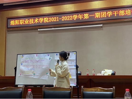 佘洋燕在授课中,首先引出逻辑层次理论进行详细阐释,然后分组进行教学,引导大家通过对愿景、身份、价值、能力、行动、环境等六大逻辑层次金字塔由高到低进行了探讨。最后,团学干部围绕“一个优秀的员工干部需要具备哪些品质和能力?”“想要成为这样的团学干部应该怎么做?”两个问题分组展开讨论,并上台分享了各组讨论的成果。