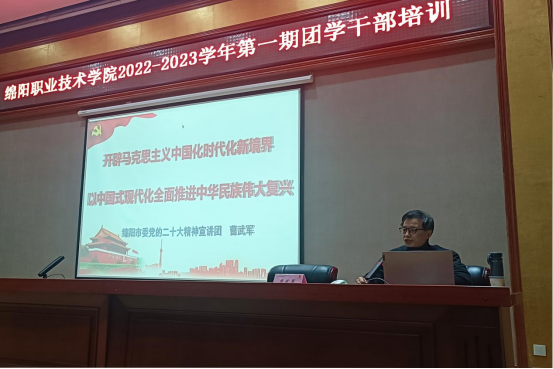 培训中,曹武军从党的二十大精神讲起,采用理论与实例相结合的方式深刻阐述了党的二十大精神的丰富内涵,围绕习近平总书记提出的“五个牢牢把握”深入浅出、旁征博引。首先从银河号、南联盟使馆、南海撞机等刻骨铭心的事件开篇,进而提出“举什么旗、走什么路、以什么样的姿态达到什么样的目的”,引发同学们的积极思考。最后,曹经理激励同学们立志做有理想、敢担当、能吃苦、肯奋斗的新时代好青年。