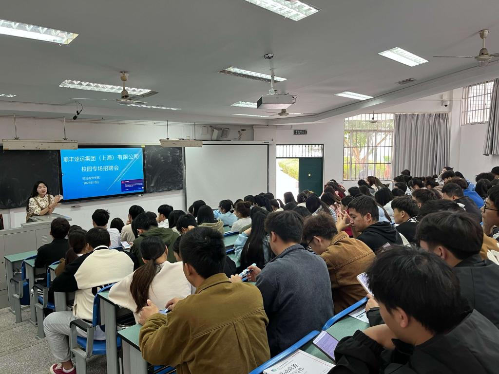 10月23日中午,顺丰速运集团(上海)有限公司校园专场招聘会在第一教学楼117教室举行,威廉希尔体育现代物流、电子商务专业毕业班辅导员及150余名毕业生参加了此次招聘会。