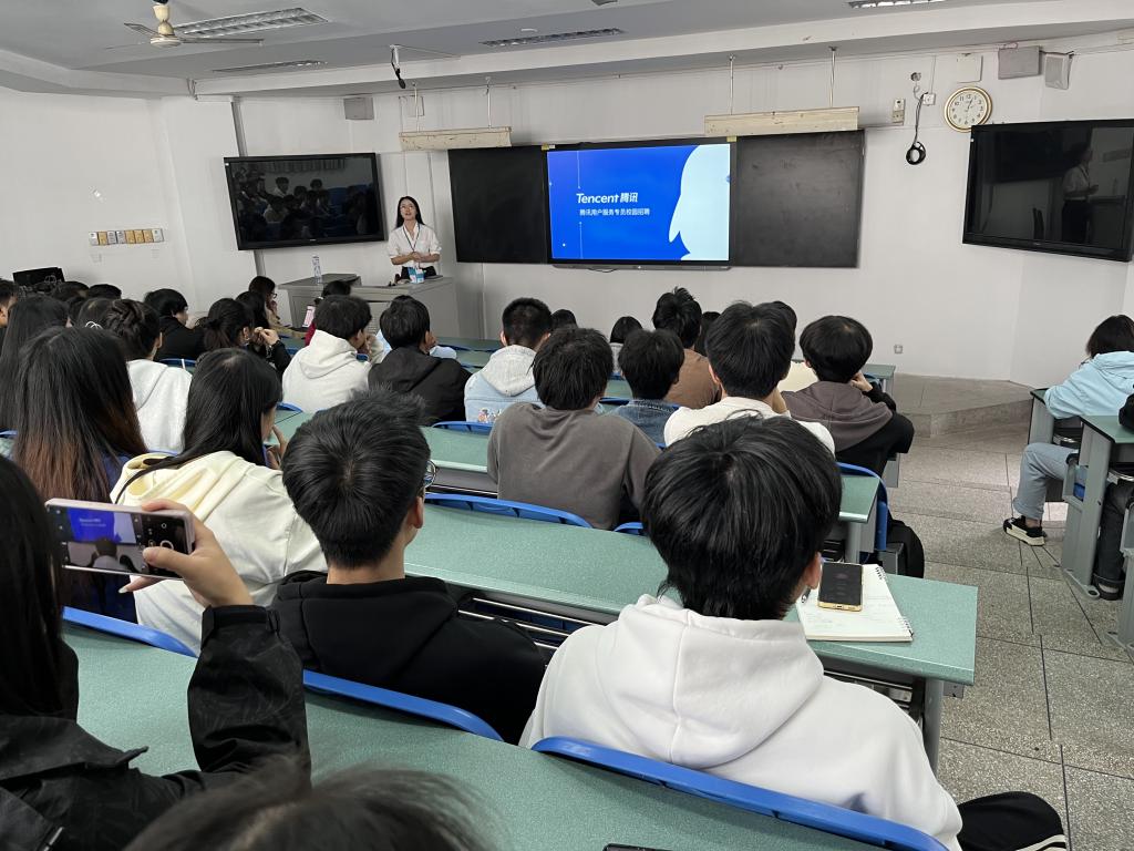10月30日中午,腾讯云智服科技(成都)有限公司双流分公司校园专场招聘会在公司第一教学楼ZB117教室举行。威廉希尔体育电子商务及现代物流专业80余名同学到场参加了招聘会。